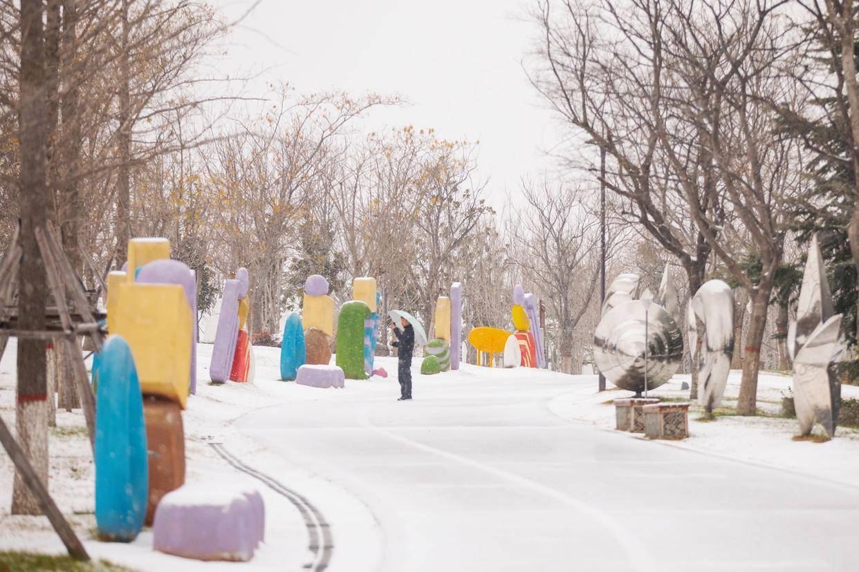 12月12 日,郑州迎来今冬首场降雪,磨真金不怕火有方的雪花为城市披上一层皑皑轻纱。位于经开区的蝶湖儿童公园,在白雪的装点下,变幻为一座静谧又烂漫的冰雪乐土。